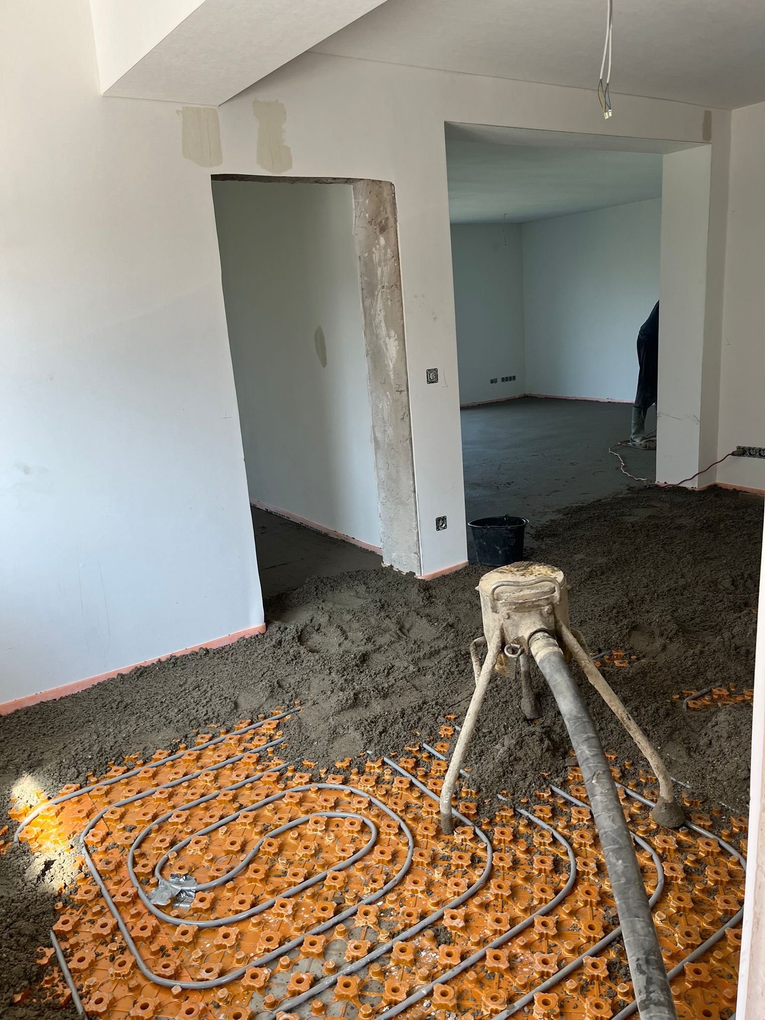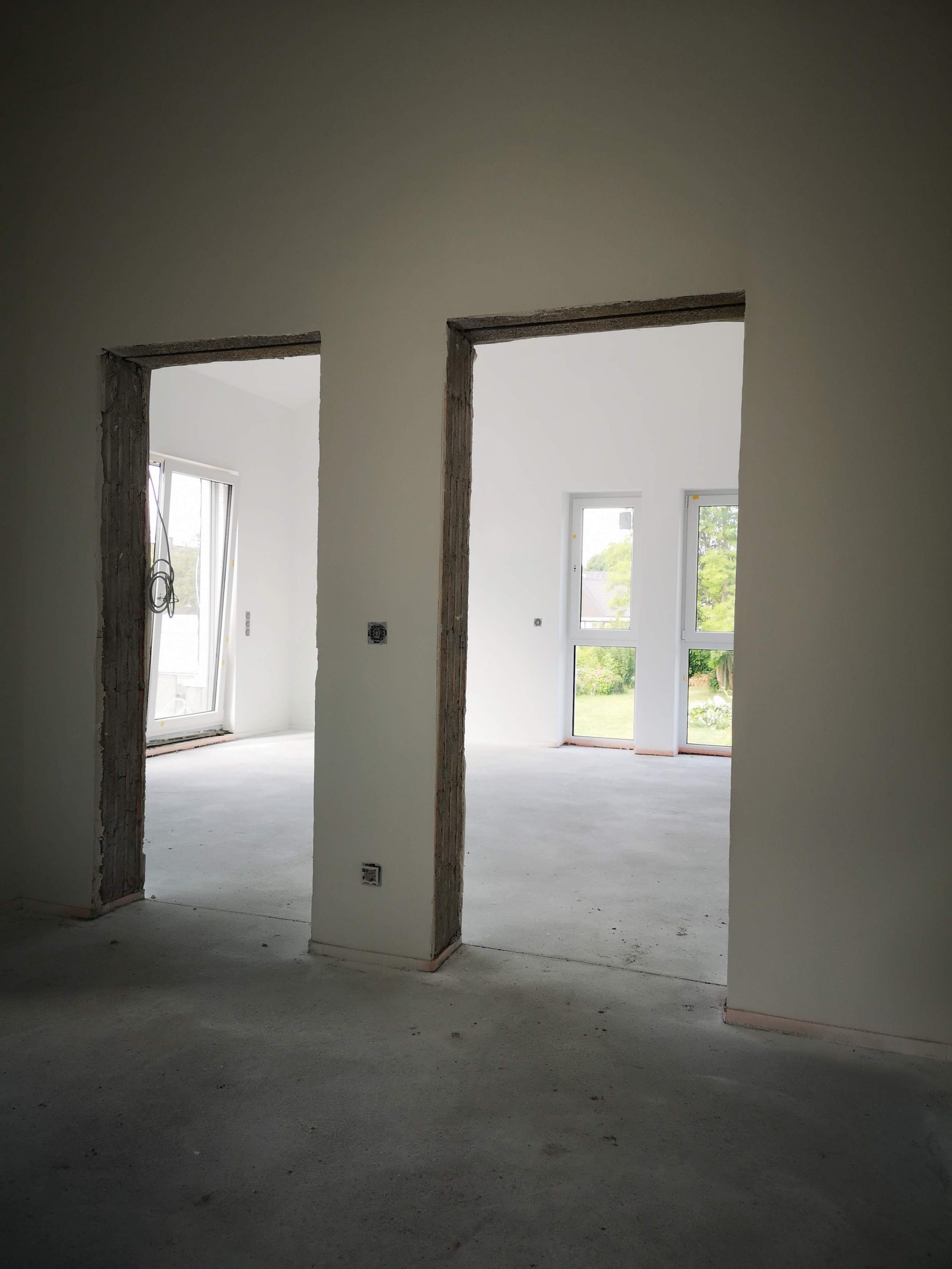 Schon vor unserer Beauftragung wurde vom Bauherrn das alte Gebäude in Eigenleistung komplett entkernt. Alle Böden, der Innenputz und feste Einbauten wurden entfernt. Das hat eine Menge Kosten eingespart, war aber auch viel Arbeit, die wochenlang dauerte.