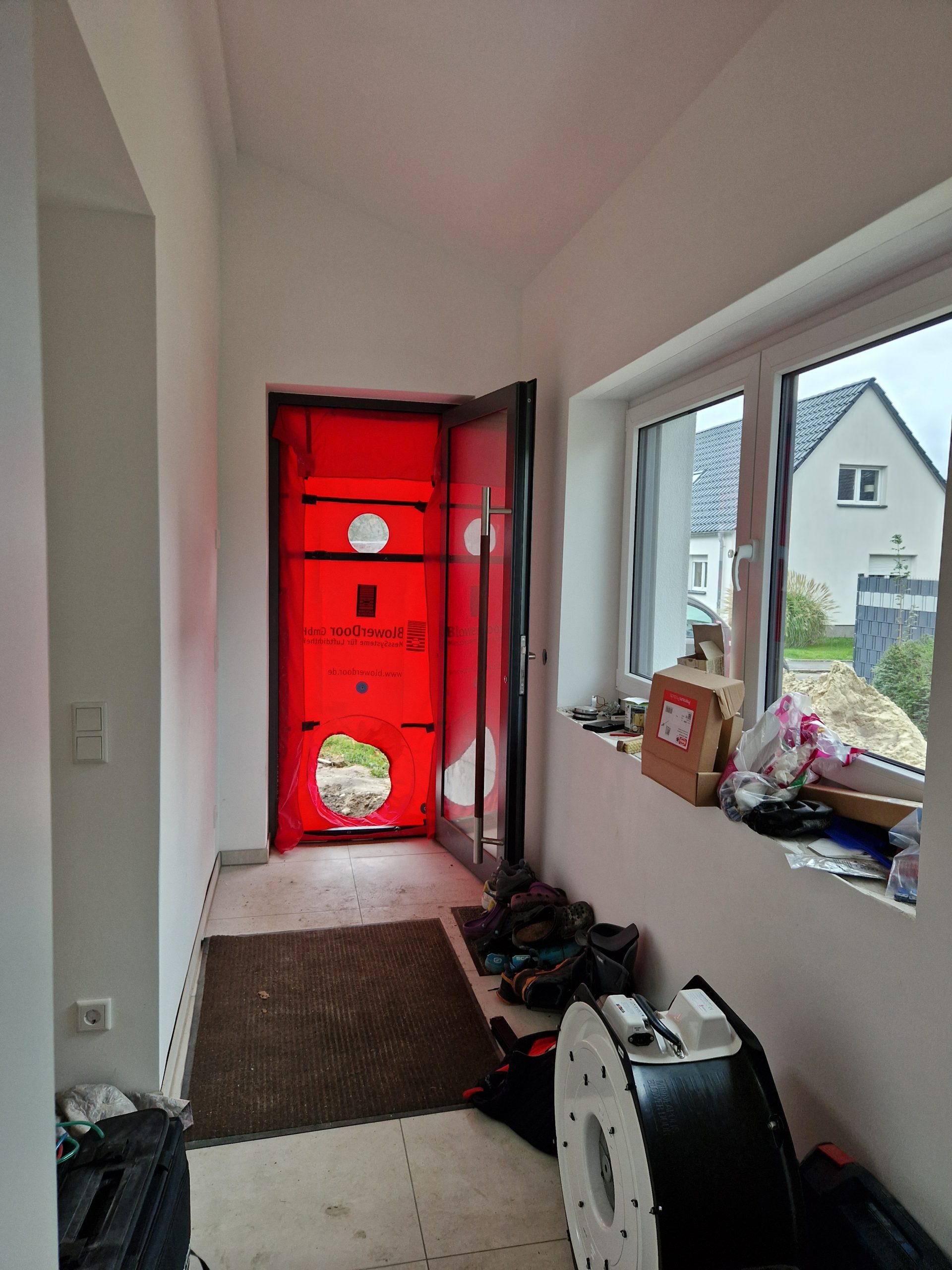 Die Kernsanierung sieht für das Haus eine komplett neue Elektrik, neue Leitungen für Trink- und Abwasser, den Einbau einer Wärmepumpe mit Fußbodenheizung, eine neue Treppe ins Dachgeschoss und neue Estriche vor. Dezentrale Lüftungsgeräte für alle Wohnräume, eine zusätzliche Wärmepumpe für die Warmwasserbereitung und eine Photovoltaikanlage auf dem Dach runden das technische Gesamtkonzept ab. Die Gebäudehülle wird mit einem 20 cm dicken Wärmedämmverbundsystem gedämmt, das Dach erhält eine 120 mm Aufsparrendämmung aus Holzweichfaserplatten. Zusätzlich wird eine Zwischensparrendämmung eingebaut, um den geforderten U-Wert < 014 zu erreichen. Die Gebäudehülle muss absolut luftdicht werden. Dies wurde durch einen Blower-Door-Test überprüft.